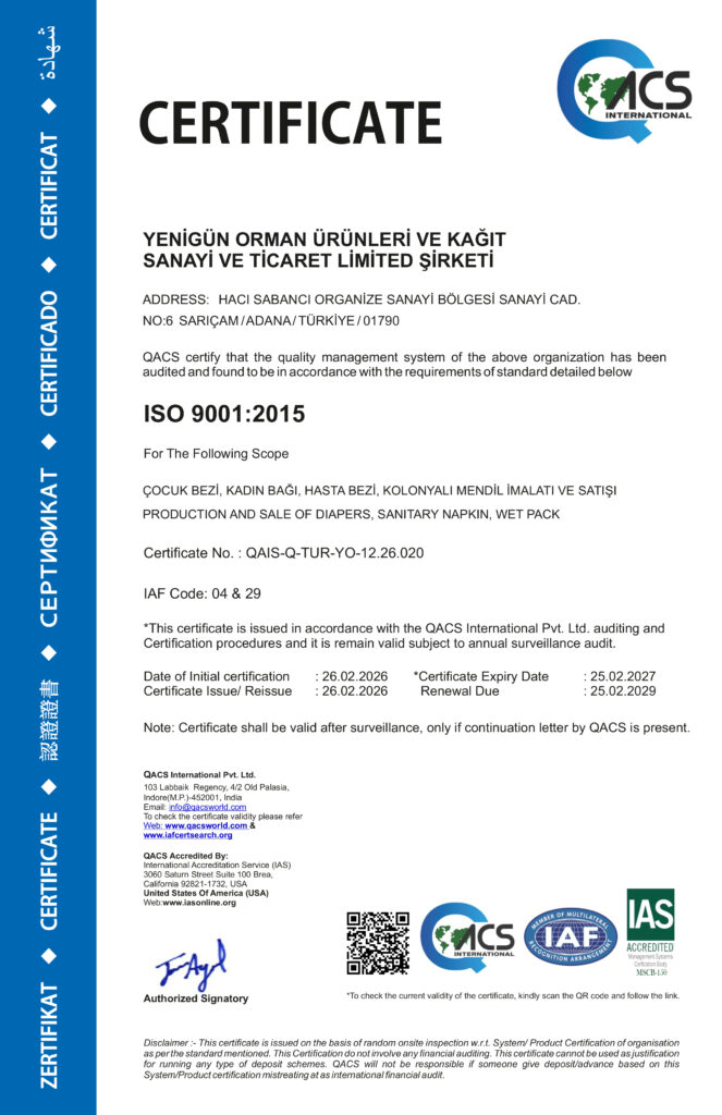 Yenigün olarak yalnızca kaliteli bebek bezleri üretmekle kalmadık; çevreye, topluma ve çalışanlarımıza karşı olan sorumluluklarımızı da her zaman ön planda tuttuk.